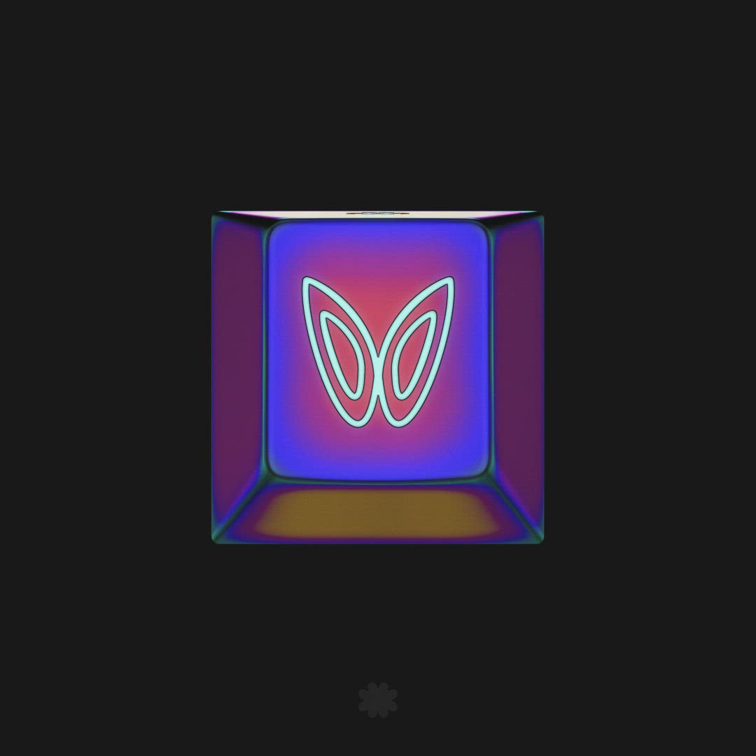 In collaboration with GMK Chaos Theory are two metal artisans: our first collaboration with HIBI, depicting the Lorenz attractor butterfly with a brass base, colourful PVD coating, and luminous glow enamel fill. The second is with our friends over at KeyLabs, whose keycap will have 20 possible combinations of enamel infill! The various infill colours will be a combination of two: pink, green, purple, yellow, and red. The keycap has an aluminum base anodized to match the modifiers’ dark purple.