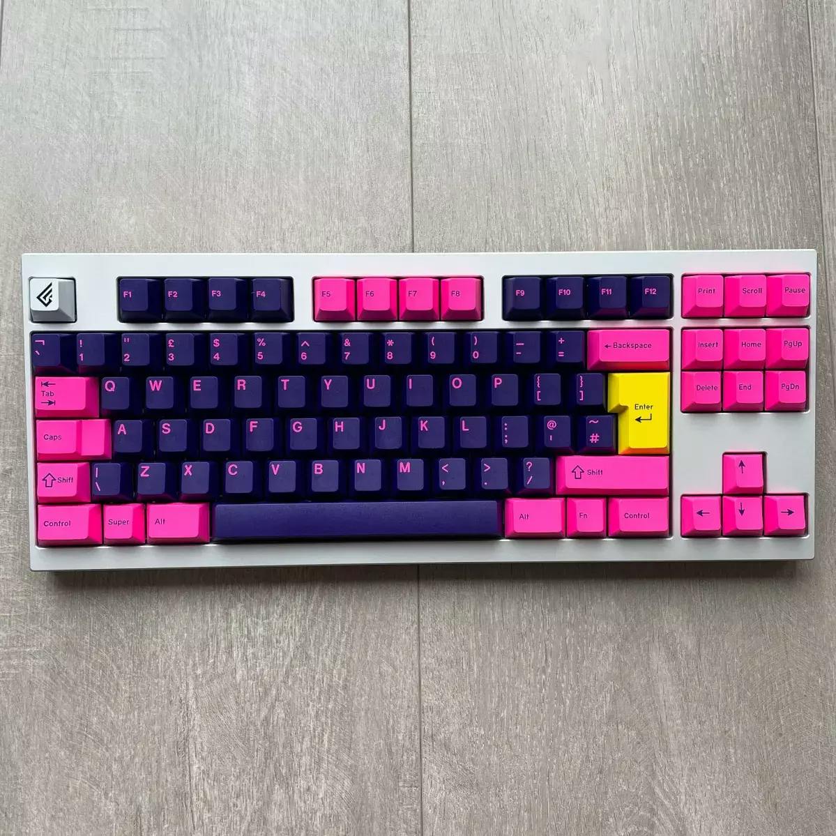 "Right on man! The 80s were huge for me. Firstly, I was born in the 80s, and thanks to my older siblings I grew up playing a classic game featuring a red car and love everything about the Retrowave iconography. Thus, GMK Retrowave was born. This is unashamedly out there 80s. Bright, fluorescent colours. Unmistakably retrowave."- Stef
